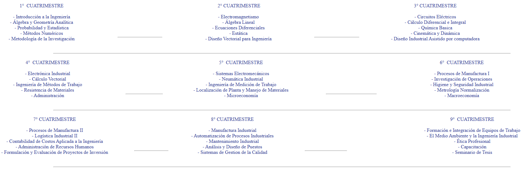 - Plan de Estudios en Lic. en Ingeniería Industrial